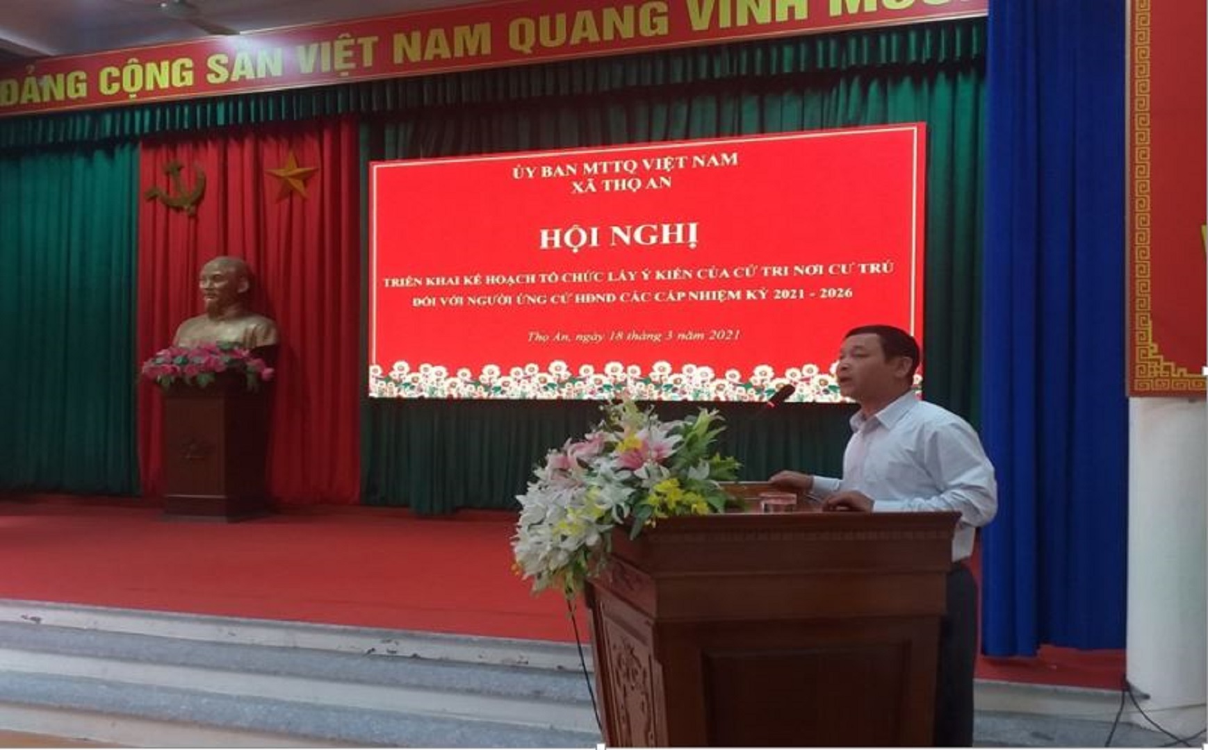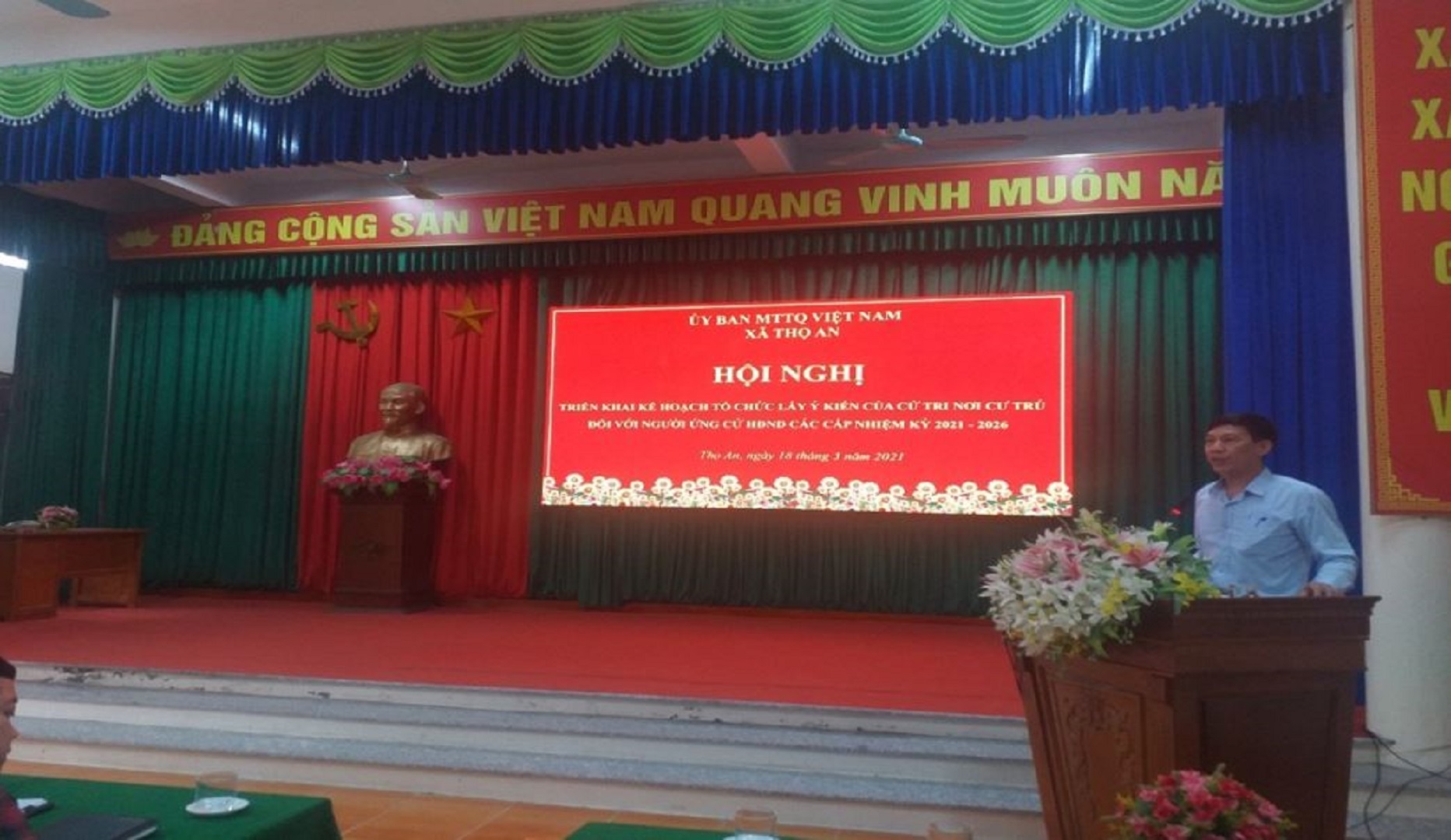 Đồng thời Ông Trần Văn Thanh cũng đề nghị Ban Thường trực Ủy ban MTTQ xã tổng hợp kết quả tổ chức thực hiện lấy ý kiến nhận xét và tín nhiệm của cử tri nơi cư trú đối với người ứng cử đại biểu HĐND các cấp nhiệm kỳ 2021 – 2026 để báo cáo với Ủy ban bầu cử của xã theo quy định. người ứng cử đại biểu HĐND các cấp nhiệm kỳ 2021 – 2026. Cùng với đó, chuẩn bị các điều kiện tổ chức Hội nghị hiệp thương lần thứ ba để lập danh sách chính thức những người ứng cử đại ứng cử đại biểu HĐND các cấp nhiệm kỳ 2021 – 2026 đạt được kết quả cao nhất.